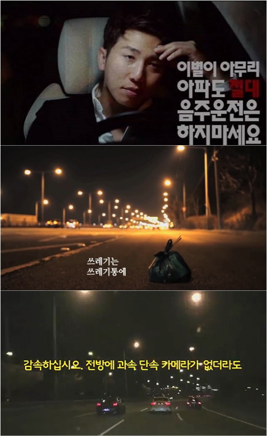 "저희가 공익 광고 시리즈를 만들기 시작했는데 처음이 '쓰레기 버리지 맙시다'. '음주운전 하지 맙시다'라는 주제로 만들어서 제가 직접 출연했어요. 조회수가 꽤 높았죠. 제가 직접 출연하니까 좀 더 사람들한테는 흡입력이 있었겠죠?(웃음) 그때부터 경찰 쪽에서 좋게 봐 주셨나봐요, 오예X처럼. 그 다음에 만든게 '과속방지 캠페인'인데 그것도 반응이 좋았죠. '감속하십시오, 전방에 과속 단속 카메라가 있습니다. 감속하십시오, 전방에 과속 카메라가 없더라도...과속은 목숨을 담보로 한 위법행위입니다'라는 내레이션으로 끝나요. 제가 만든 카피예요."