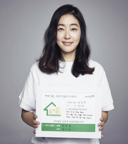 [스포츠조선닷컴 김준석 기자] 배우 박진희가 아동학대 예방을 위한 서명릴레이에 동참해 메시지를 전달했다.