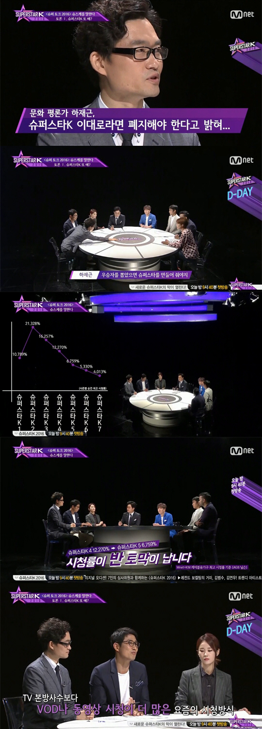 [스포츠조선닷컴 김영록 기자]'슈퍼토크' 평론가 하재근이 '슈퍼스타K'의 현실에 대해 냉정한 평가를 내렸다.