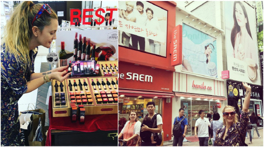 23일 오후 드류 베리모어는 자신의 SNS 계정에 명동의 뷰티 로드로 보이는 곳에서 찍힌 사진 3장을 게재했다. 사진 속 드류 베리모어는 국내 유명 뷰티 편집숍 간판을 가리키는 듯한 포즈를 취하고 있으며 또 다른 사진에서는 국내 한 코스메틱 브랜드의 제품을 살펴보고 있다.