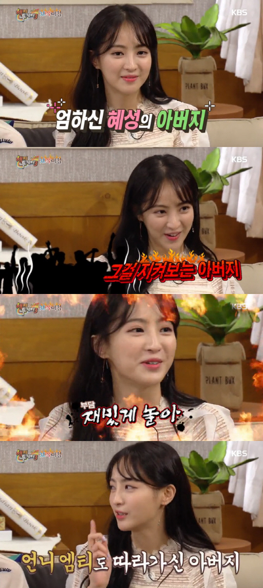 "그런데 생각해보니까 아버님이 그냥 엠티를 좋아하시는 거 아닌가? 정혜성 씨가 오해를 하고 있는 거 아닌가?"라고 의혹을 제기해 웃음을 자아냈다. <스포츠조선닷컴>