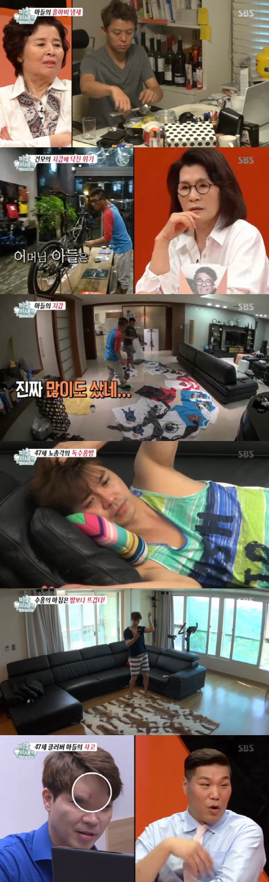 다음으로 박수홍의 일상이 공개됐다. 페스티벌에서 한바탕 놀고 집으로 돌아온 박수홍은 거실에 누워 TV 속 자신의 모습을 바라봤다. 그리곤 바로 최고의 야식인 라면을 끓여 TV 앞에서 먹었다. 다음날 깨어난 박수홍은 아침부터 혼자 영상을 틀어놓고 대세 클럽 댄스를 연습했다. 이를 본 박수홍 어머니는 "저래서 장가를 못 가나봐"라며 탄식했다.