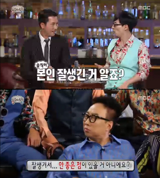 [스포츠조선닷컴 김준석 기자] '무한도전' 정우성이 외모 자랑으로 예능감을 뽐냈다.