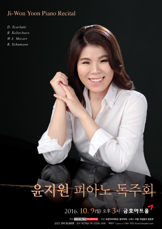 완벽한 기교와 섬세한 감성, 그리고 예리한 곡 해석이 돋보이는 피아니스트 윤지원이 오는 10월 9일 금호아트홀에서 독주회를 연다. 국내 처음 연주되는 R. 켈터본의 '클라비에스튁 3' 등 주옥같은 피아노 명곡들을 선사한다.