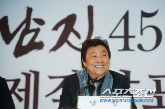 [스포츠조선 박영웅 기자] 가수 남진이 자신의 히트곡 '빈잔'을 만든 원로 작사가 겸 작곡가 조운파의 40년 가요 작가 인생을 축하했다.