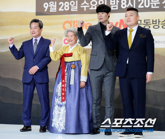 27일 서울 영등포 타임스퀘어에서는 올리브TV '한식대첩4'의 제작발표회가 열렸다. 이날 강호동은 새롭게 MC를 맡게된 부담감을 숨기지 않았다. '한식대첩'은 MC김성주의 부드럽고 재치있는 진행이 맛을 더했던 프로그램. 강호동의 어깨가 무겁다. 그는 "'한식대첩'은 이미 시청자들에게 많은 관심과 호응을 받고 있기 때문에 부담스러운 것이 사실이다"라고 말했다. 이어 "그래도 제가 가장 잘할 수 있는 것은 현장의 흥을 돋우고 치열한 승부가 펼쳐지는 곳에서 익살스러운 부분을 살리는 것이라 본다"고 말했다. 강호동은 또한 "첫 녹화가 18시간이나 걸렸다"며 "체력은 자신 있는 편인데, 결국 무릎을 꿇고 말았다"며 심혈을 기울인 첫 녹화 현장의 분위기를 전했다.