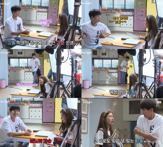 손바닥을 있는 힘껏 두 차례 얻어맞은 갑돌이는 나가면서 갑순이에게 꿀밤 세례를 날리며, 자신의 소심한 복수에 좋아하는 장면이 공개돼 촬영 현장을 웃음바다로 만들었다. 여기에 질세라 갑순은 실제로 아프게 꿀밤을 때린 갑돌이에게 분노하며 다음 촬영 장면에서 복수를 꿈꾼다.