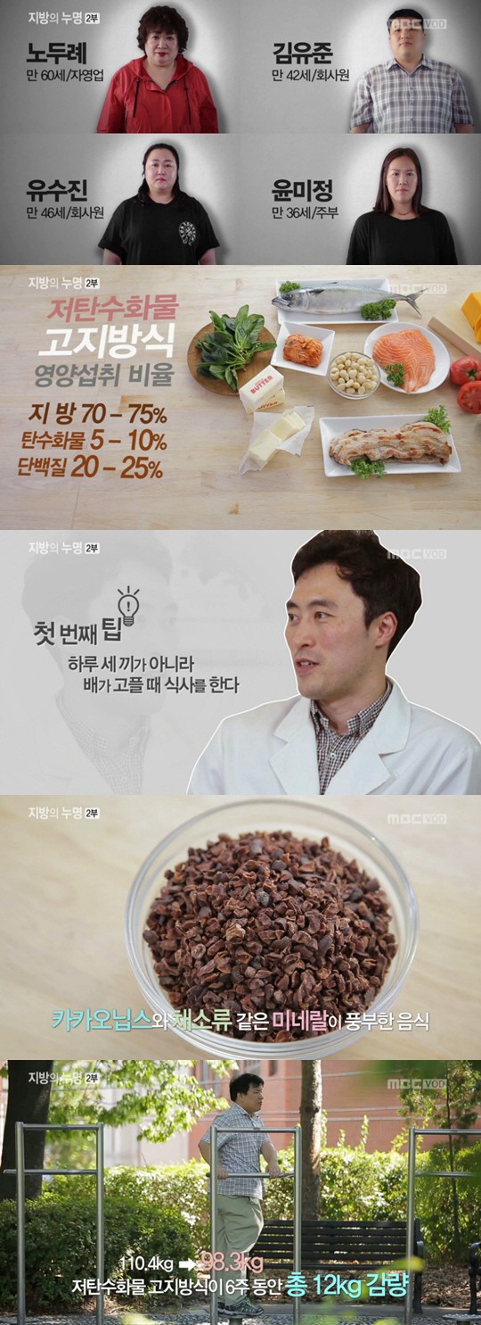 26일 밤 방송된 MBC 스페셜 '밥상, 상식을 뒤집다 - 지방의 누명 2부'에서는 저탄수화물 고지방 식이요법에 직접 도전한 이들의 모습이 전파를 탔다.