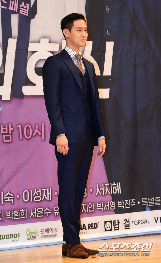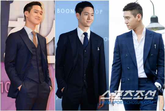 고경표는 극 중에서는 물론 공식 석상에서도 수트차림을 주로 선보이며 현실 속 설렘을 이어갔다. '질투의 화신' 제작발표회 당시 그는 짙은 네이비 컬러의 수트로 여심 단단히 잡을 것을 예고했다. 쓰리피스 수트 재킷과 베스트와 타이가 적절히 다 갖춰진 완벽한 차림으로 공식 석상에 걸맞은 클래식하고 화려한 느낌을 돋궜다. 자칫 올드하고 중후해 보일 수 있는 단점은 핀스트라이프 셔츠와 밝은 컬러의 패턴 타이로 보완한 센스가 돋보인다.