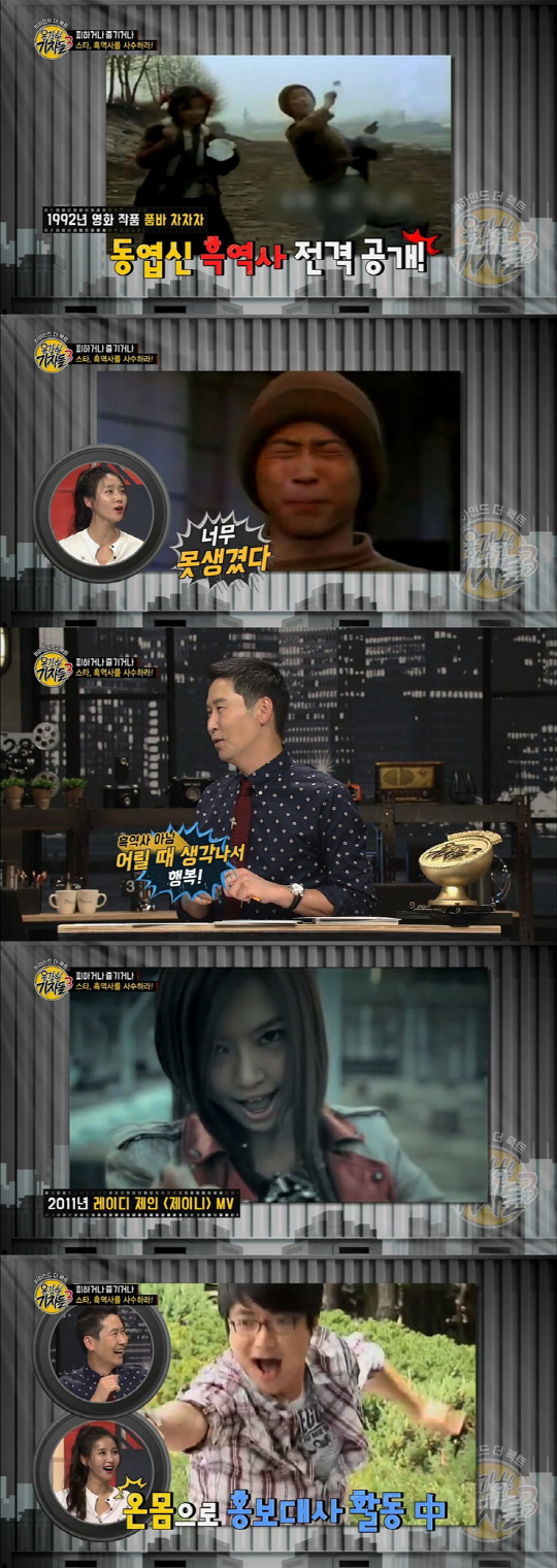 신동엽의 영상을 이어 레이디제인의 댄스 영상이 공개됐다. 레이디제인은 "소속사에서 댄스를 시킨 적이 있었다"며 영상을 내려 달라고 절규해 모두를 웃게 했다. 반면, 김정민은 자신의 과거 영상에 당당한 태도를 취했지만 "난 노래는 잘했지만 음치였다"고 횡설수설하는 모습을 보여 다시 한번 현장에 웃음을 더했다.