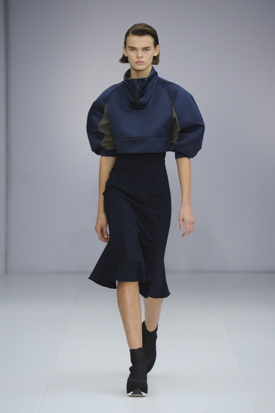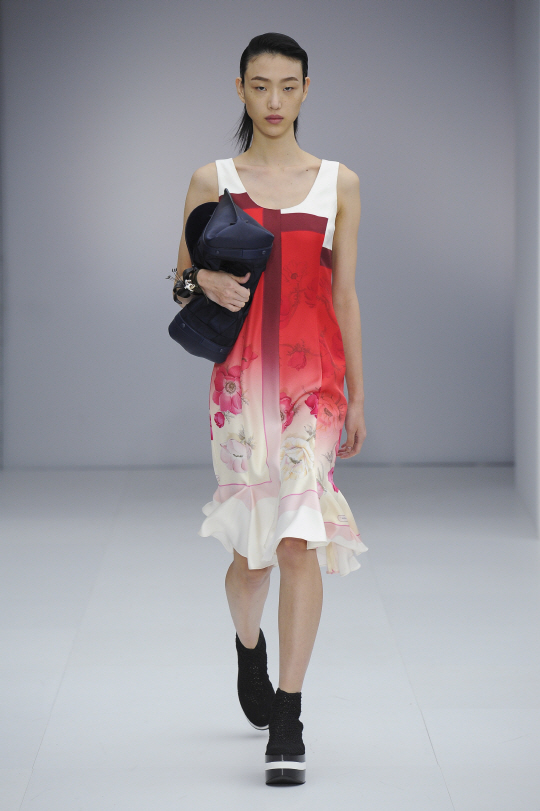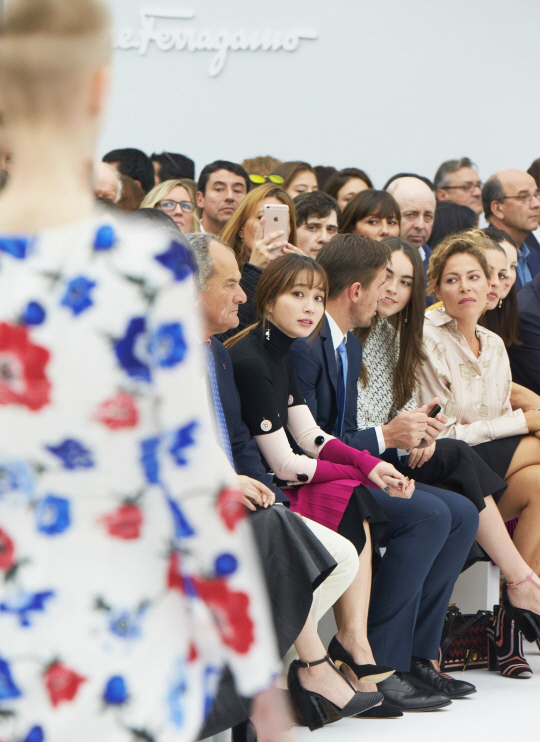 지난 25일(현지시간) 이탈리아 밀라노에서 진행된 살바토레 페라가모(Salvatore Ferragamo) 2017 S/S 컬렉션에 참가한 이민정의 모습이다.