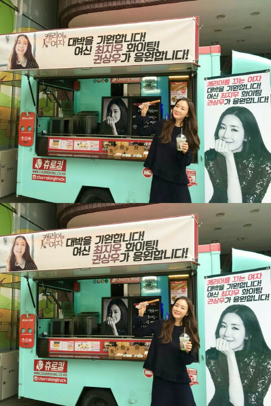 [스포츠조선 조윤선 기자] 배우 최지우가 권상우의 응원 간식차 덕 웃음꽃을 활짝 피웠다.