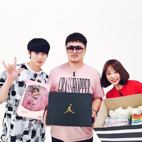 사진 속 김희철은 방송에서 "니코니코니~"로 화제가 됐던 니코의 피규어를 안은 채 데프콘-하니와 포즈를 취했다.