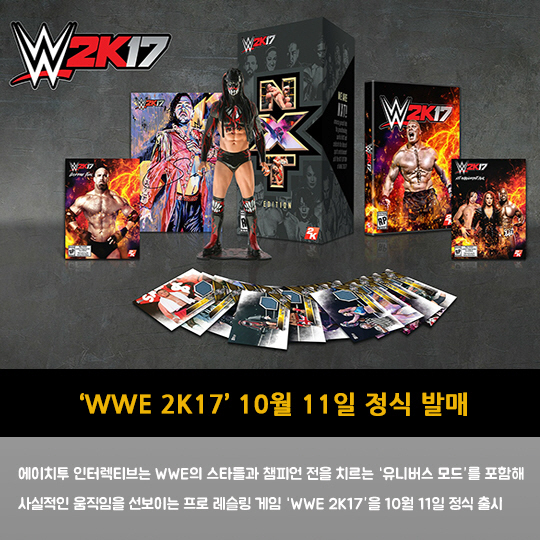 에이치투 인터렉티브는 WWE의 스타들과 챔피언 전을 치르는 '유니버스 모드'를 포함해 사실적인 움직임을 선보이는 프로 레슬링 게임 'WWE 2K17'을 10월 11일 정식 출시