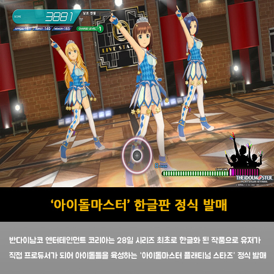 반다이남코 엔터테인먼트 코리아는 28일 시리즈 최초로 한글화 된 작품으로 유저가 직접 프로듀서가 되어 아이돌들을 육성하는 '아이돌마스터 플래티넘 스타즈' 정식 발매