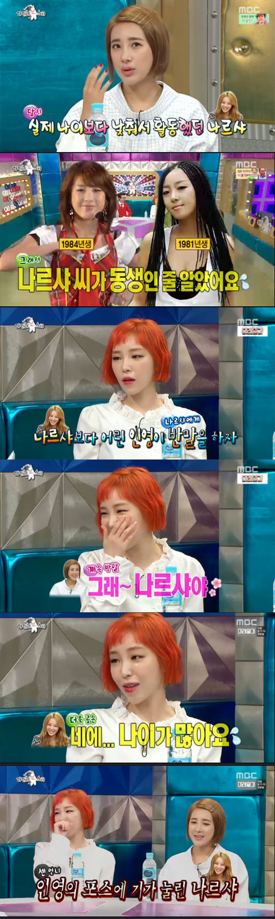 가인은 "저희 팀 언니들이니까 나이가 더 많은 걸 알지 않냐"며 "좀 화가 났다. '언니들 나이가 더 많아요'라고 말해야겠다고 생각했다"고 강조했다. 이에 서인영은 "어머, 화까지 났었어?"라며 맞받았다.