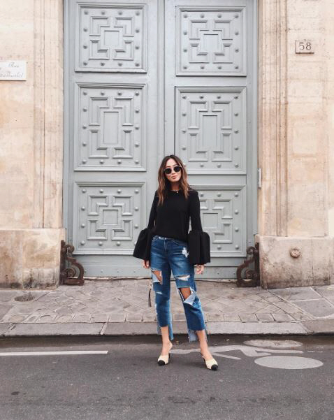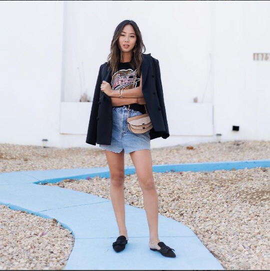 세계적으로 유명한 패션 인플루언서 아미송(Aimee Song). 센스있는 스타일링과 감각적인 사진들로 가득 채워진 그녀의 인스타그램을 보면 올 시즌 유행하는 아이템을 한 눈에 볼 수 있다. 지금 이 순간 그녀의 SNS에서 가장 핫 한 아이템은 바로 백 오픈 슈즈와 후프 아이템이다. 그녀는 이 독특한 잇템들을 어떻게 스타일링 했을까?