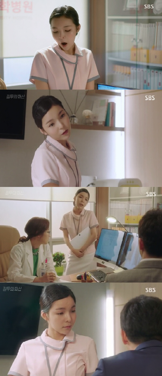 '질투의 화신'에서 오간호사로 등장하는 박진주는 첫 등장부터 시청자의 강렬한 인상을 남기며 시청자의 시선을 제대로 강탈한 바 있다. 오간호사는 병원에 올 때마다 불안함에 '동공지진'을 일으키는 이화신을 무표정하고 시니컬한 태도로 대하면서도 적정선의 미소를 잃지 않는 '소울리스'한 모습을 보여줬다. 실제 간호사를 보는 듯한 자연스러운 대사와 표정 때문에 '질투의 화신'의 팬들 사이에서는 단숨에 '화제의 인물'로 떠올랐다. "진짜 간호사를 데려와서 연기 시킨 거 아니냐" "리얼리즘을 넘어선 하이퍼리얼리즘, 수퍼리얼리즘이다" "진정한 신스틸러"라는 네티즌 반응이 줄을 이었을 정도다.