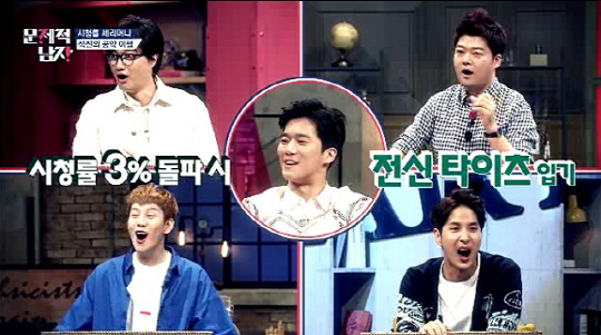 최근 진행된 tvN '뇌섹시대-문제적 남자' 녹화에서 하석진은 전신 쫄쫄이 복장으로 등장, 큰 웃음을 선사했다. 앞서 하석진은 tvN 월화극 '혼술남녀' 시청률이 3%를 넘기면 전신 타이즈를 입겠다는 공약을 내건 바 있다. 그런데 '혼술남녀'가 방송 2회 만에 3%대를 돌파하면서 약속을 이행한 것. 하석진은 여기에 독특한 퍼포먼스까지 선보여 스튜디오를 열광의 도가니로 만들었다는 후문이다.