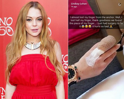 린제이 로한은 "내 보트를 정박시키다가 손가락을 다쳤고 하마터면 절단된 부분을 못찾을 뻔했다. 다행히 잘려나간 손가락을 찾아서 바로 수술을 했다"고 당시 상황을 설명했다.