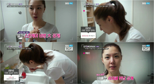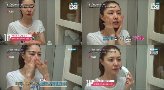 서지혜가 공개한 세안비법은 바로 2중 세안. 먼저 클렌징 크림으로 메이크업과 노폐물을 녹여낸 후 물세안으로 1차 세안을 마친다. 그 후 미스트를 가볍게 뿌리고 뷰티 디바이스로 미처 클렌징되지 못했던 부분과 피부 속 노폐물을 쏙쏙 잡아내어 2차 클렌징을 완성하는 것이다.
