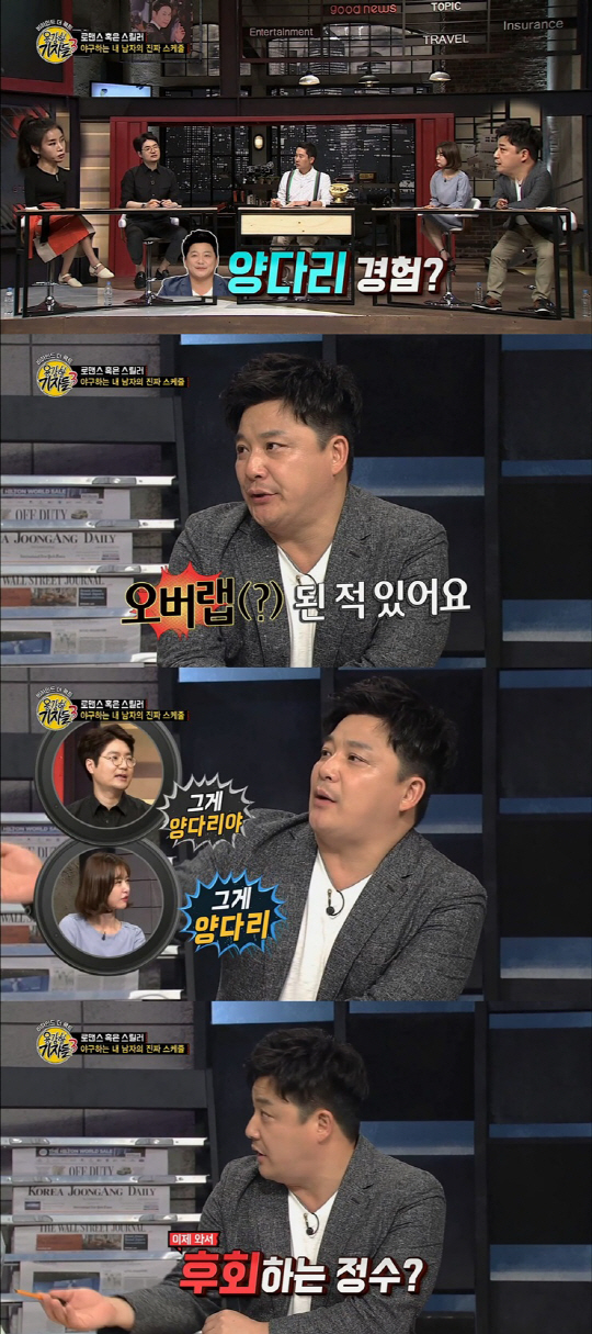 김태현과 레이디제인은 "그게 양다리"라고 꼬집었고, 윤정수는 "이 여자와 헤어져야 하나 생각하던 순간에 새로운 여자가 마음에 들어서 이별을 결심한 것"이라고 변명했다.