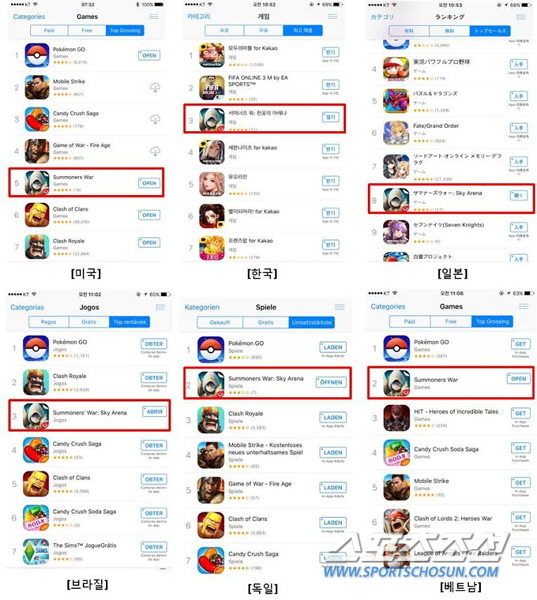 그 동안 서머너즈워는 북미와 유럽, 남미, 동남아 등지에서 사랑받은 게임이었다. 이 정도의 성적도 엄청난 성과지만 게임의 서비스 기간이 길어지고 개별 마케팅과 글로벌 캠페인으로 유명세를 타면서 이제는 아프리카와 중동 지역에서도 서서히 매출이 발생해 전 세계 대표 모바일 RPG로 거듭났다.