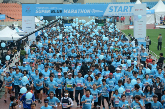 슈퍼블루 마라톤은 스페셜올림픽코리아와 롯데가 2014년부터 진행하고 있는 장애인 인식개선을 위한 '슈퍼블루 캠페인'의 연장선에서 탄생했다. 슈퍼블루 캠페인은 장애인에 대한 인식개선 캠페인이다. 슈퍼블루 컬러의 신발끈을 매고 달리며 장애인에 대한 인식을 되돌아보자는 취지에서 마련됐다. 장애인이 사회의 일원으로 당당하게 자리 잡을 수 있도록 배려하고, 나아가 장애인과 비장애인이 더불어 사는 사회를 목표로 한다.