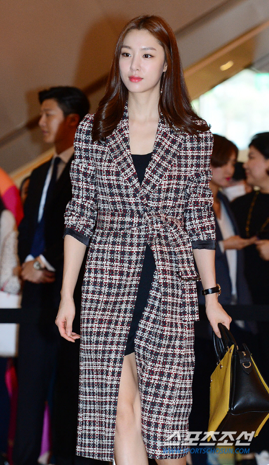 서지혜는 체크 패턴 트렌치 코트를 활용한 럭셔리한 무드의 가을룩 연출했습니다. 또한 트위드 소재와 벨티드 디테일 등으로 화려한 외모를 한층 돋보이게 만들었는데요. 이렇듯 화려한 느낌의 아우터를 활용할 때에는 그녀처럼 짧은 기장과 블랙 컬러 등 단색의 아이템을 이너로 선택해 아우터 자체의 매력을 도드라지게 보이도록 하는 편이 좋습니다. 구두와 백 역시 깔끔한 디테일의 아이템으로 매치한 센스가 돋보이네요.