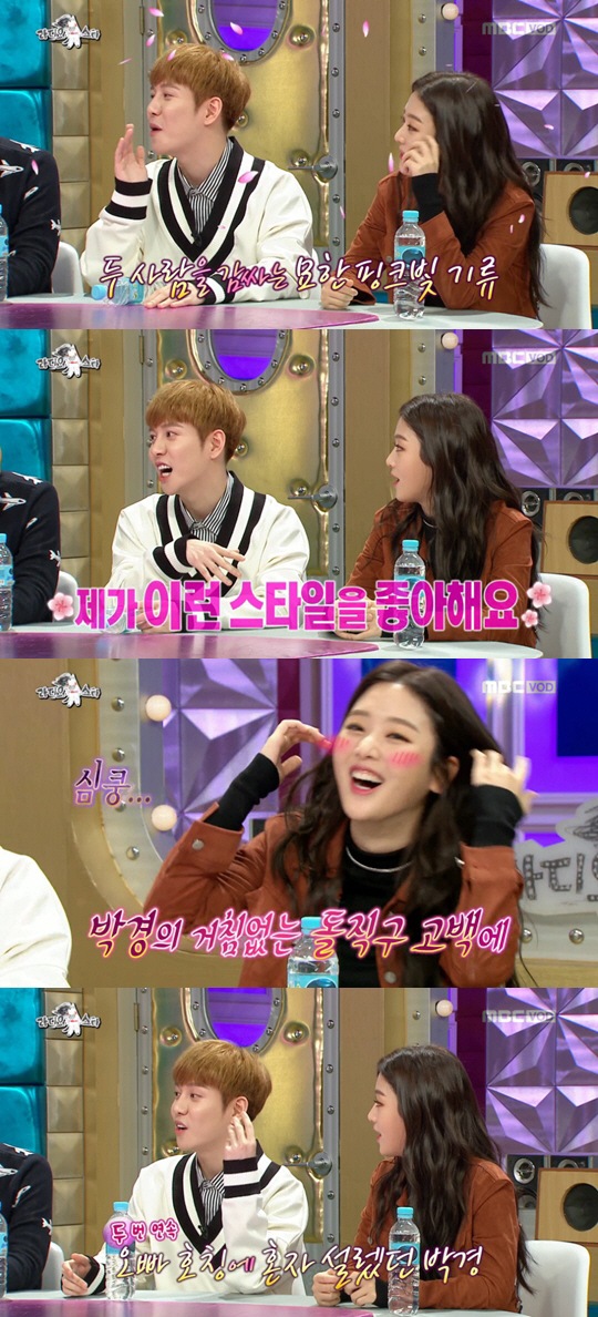 '라디오스타' 블락비 박경과 래퍼 키썸이 핑크빛 기류를 형성했다.