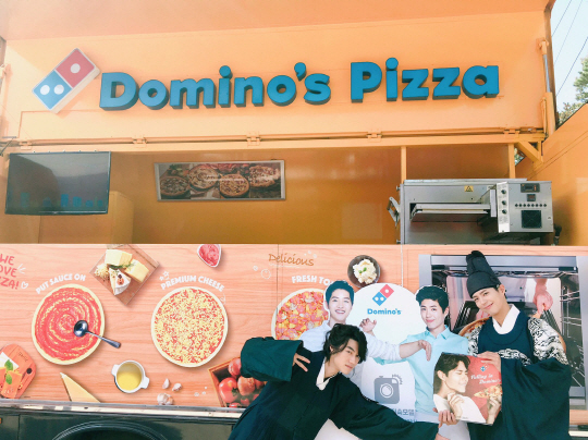 특히 송중기와 함께 도미노피자 전속 모델로 활동 중인 박보검은 자신의 얼굴이 그려진 박스를 들고 미소를 지어 눈길을 끈다.