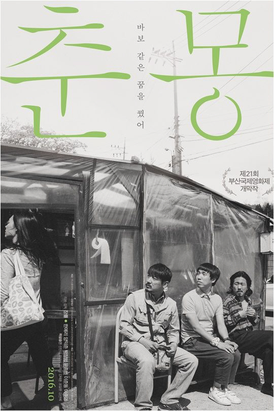 시네아스트 장률 감독의 10번째 작품 '춘몽'이 6일 제21회 부산국제영화제(BIFF) 개막식에 앞서 열린 기자시사회에서 첫 선을 보였다. '춘몽'은 의식이 없어서 거동을 할 수 없는 아버지를 돌보며 작은 술집을 운영하며 힘들게 살아가는 예리(한예리)와 예리의 마음을 얻기 위해 애쓰는 익준(양익준), 정범(박정범), 종빈(윤종빈)의 이야기를 그린다. 흑백화면과 절제된 음악, 일상적 리듬 등 장률 특유의 스타일과 풍성한 유머를 느끼게 해 주는 작품.