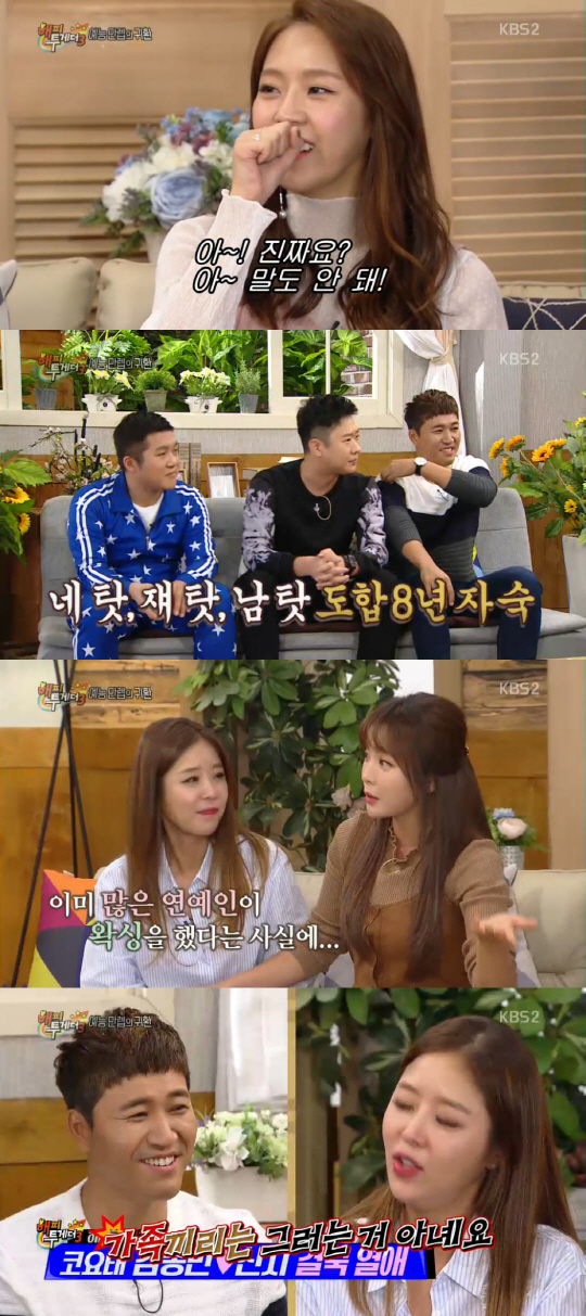 홍진영은 과거 데프콘이 '해투'에 출연해 김종민이 왁싱을 한 사실을 공개했던 일화를 떠울리며, "모양도 내고 그랬냐"라고 김종민에게 물어 김종민을 당황케 했다.