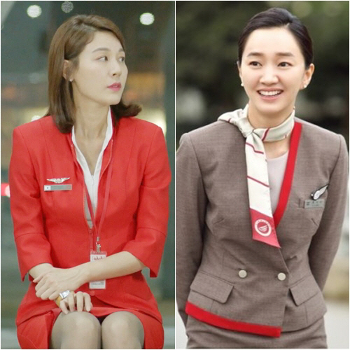 김하늘, 수애 역시 승무원 복장의 모습이 공개된 이후부터 많은 시청자들의 관심을 끌었다. 김하늘의 경우에는 강렬한 레드 컬러의 제복으로 눈길을 사로잡았고 수애의 경우 방영 전인데도 불구하고 승무원 룩이 공개되자 마자 고유명사 '드레수애' 대신 '제복수애'라는 타이틀을 얻었다. 과연 김하늘과 수애의 스튜어디스 룩은 어떻게 다른지, 올해의 하늘 위 제복 여신은 누가 될 것인지 한 번 살펴보자!