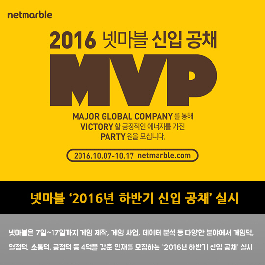 - 넷마블 '2016년 하반기 신입 공채' 실시