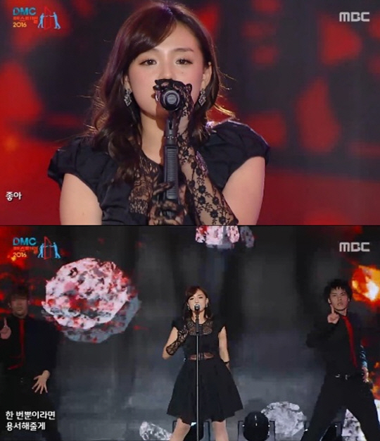 시노자키 아이는 8일 방송된 MBC '2016 DMC 페스티벌-뮤콘개막특집 아시아뮤직네트워크(AMN) 빅 콘서트'에서 '입이 험한 여자'를 열창했다.