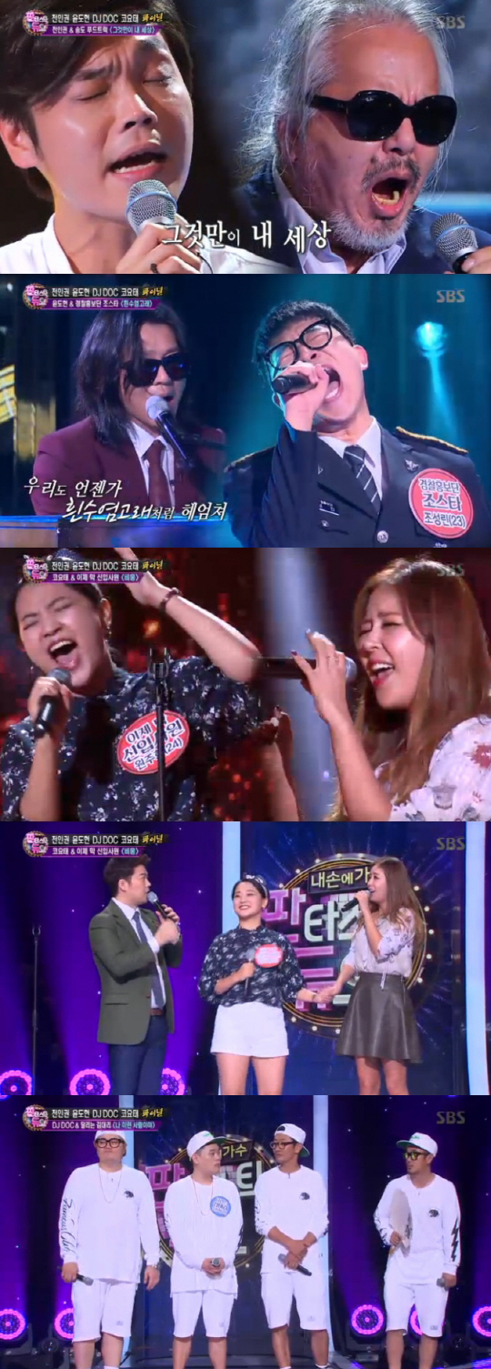이어진 무대는 DJ DOC와 '달리는 김대리' 김찬혁이 나섰다. 이들은 DJ DOC의 '나 이런 사람이야'를 선곡했다. DJ DOC와 김찬혁은 완벽한 하모니로 환상의 호흡을 자랑했다. 특히 무대 중간 '서울대 덤앤더머'가 특별 출연해 깜짝 댄스를 선보여 흥을 더했다. 모두의 심장을 뛰게한 리얼 힙합 무대를 선보인 네 사람은 결국 285을 획득, 신지 팀을 꺾고 승리했다.