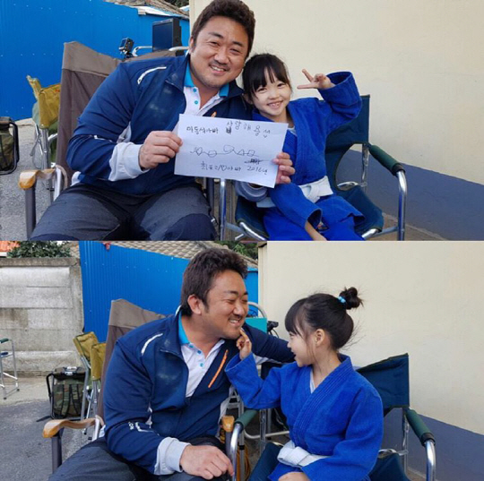 사진에는 영화 '원더풀 라이프'에서 부녀로 나오는 마동석과 최유리의 모습이 담겨 있다. 사진 속 마동석은 최유리가 선물한 그림을 들고 행복한 표정을 짓고 있다. 최유리가 선물한 그림에는 '마동석 아빠 사랑해용'이라는 애교 가득한 글이 적혀 있다. 또 마동석은 최유리가 자신을 바라보며 애교 넘치는 행동을 하자 사랑스러운 눈빛과 함께 광대승천 아빠 미소를 지어 눈길을 끈다.
