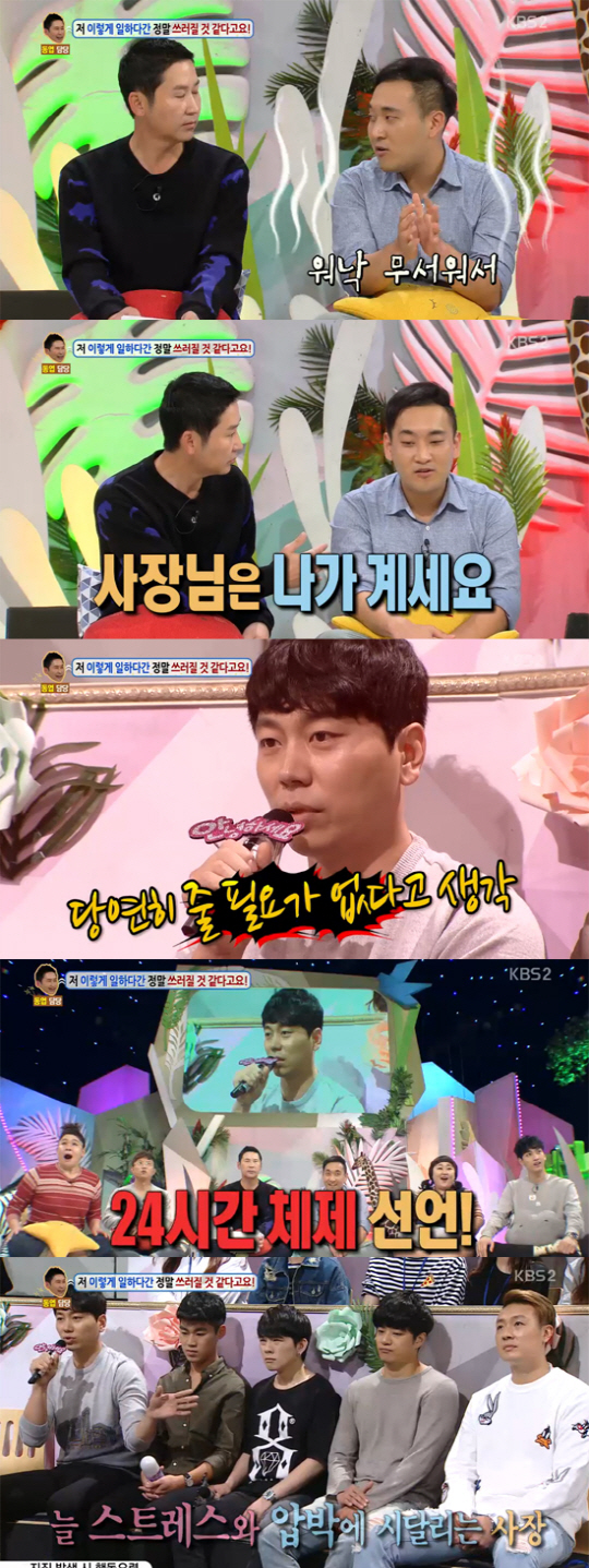 이에 사장은 "이 친구들을 나중에 다 책임지려고 한다. 현재 좀 힘들더라도 쉴 틈이 없다"고 독려했고, MC 이영자는 "장사는 마라톤인데 단거리 선수처럼 뛰고 있다. 소통을 하셔야 할 것 같다"고 조언했다.
