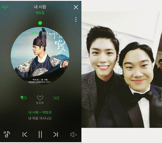 한편 박보검이 부른 '내 사람'은 극중 이영(박보검)의 지고지순한 마음을 대변하는 노래로, 지난 10일 방송된 '구르미 그린 달빛' 중 홍라온(김유정)을 떠나보내며 눈물을 흘리는 이영의 모습에 덧입혀져 애절함을 한층 더했다.