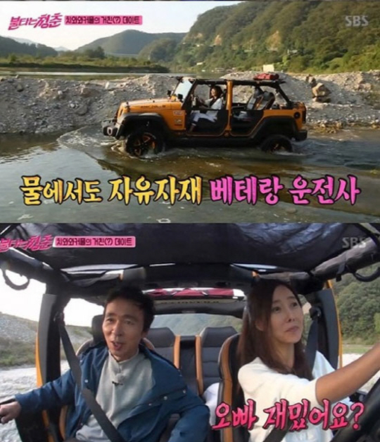 이때 강수지는 오프로드에 맞는 지프를 타고 여성스러운 모습과 달리 터프하게 운전을 했다. 강수지는 흙길과 자갈밭을 시원하게 달리며 '걸크러쉬' 매력을 발산해 김국진을 또 한 번 반하게 만들었다.