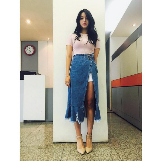 지헤라는 상당히 성숙한 패션센스와 모델들에게 결코 뒤지지 않는 몸매를 갖은 성숙한 외모의 여성이다. 지헤라가 착용한 트임 디테일의 데님 롱스커트. 거기에 은은한 피치 컬러의 쇼트 슬리브 매치한 지헤라의 자태가 멋스럽다. 그리고 누드톤의 스트랩 펌프스 힐을 착용. 자신의 아찔한 각선미를 부각시키는 패션을 선보였다.
