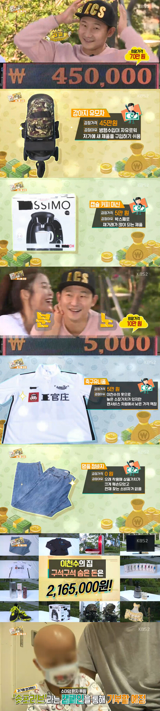 이천수는 "뭐 이래!"라며 허탈한 웃음을 지었다. 이천수 측 가격보다 좋은 감정가가 나온 제품은 에어컨, 스탠드 등 소수에 그쳤다.