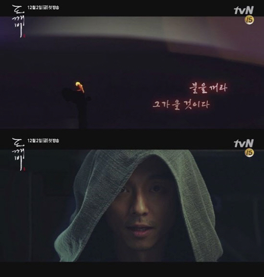 지난 13일 tvN '도깨비' 측은 각종 온라인 채널을 통해 15초 가량의 티저 영상을 게재했다. 거센 바람에 꺼져가는 촛불과 함께 '불을 꺼라. 그가 올 것이다'는 자막이 그려진다. 이어 꺼져가는 불꽃과 함께 카리스마 있는 눈빛의 공유가 등장했다. "분노한 신을 만나게 되는 것이다"고 읊조린 공유는 몽환적이고 신비로운 분위기를 자아낸다.