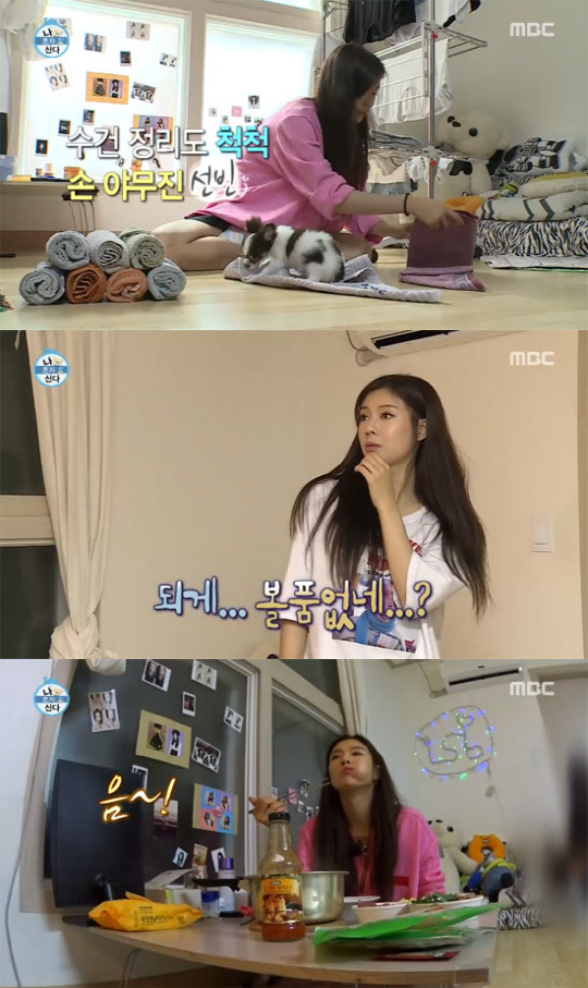 이후 니트와 옷걸이를 이용해 강아지 집을 뚝딱 만들고 옷을 리폼하는 등 남다른 손재주를 자랑했다. 또한 망가진 립스틱 역시 버리지 않고 바세린과 섞어 재활용하는 알뜰함까지 똑 소리 나는 살림 솜씨를 보였다.