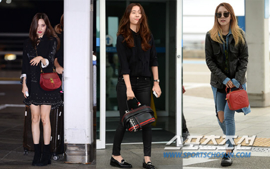 명불허전 패셔니스타 크리스탈. 크리스탈은 레드 스티치가 매력적인 핸드백으로 심플하지만 눈에 확 들어오는 스타일링을 선보였다. 하이넥 디테일이 감각적인 블랙 블라우스와 아찔한 몸매를 부각 시켜주는 스키니 팬츠를 매치. 롤업으로 인해 허전할 수도 있는 손목을 고급스러운 디자인의 시계로 보완했다. 거기에 레드 스티치가 포인트로 들어간 블랙 컬러의 핸드백을 착용해 시크한 무드가 풍겨 나오는 스타일링을 선보였다.