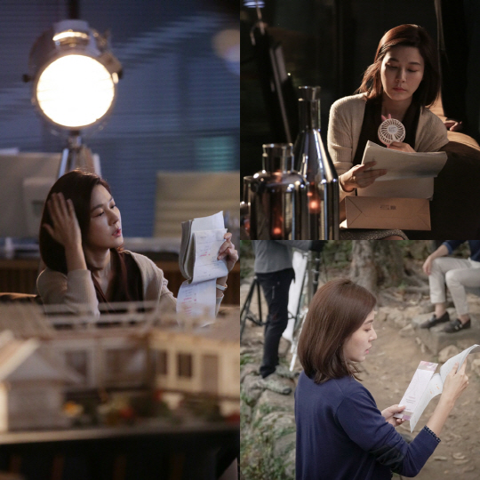 공개된 사진 속 김하늘은 장소, 시간을 불문하고 손에 대본을 든 채 열심히 촬영을 준비 중이다. 야외 고택촬영장부터 실내 작업실 세트장까지, 밝은 햇살이 빛나는 대낮부터 어둠이 짙게 깔린 밤까지. 김하늘은 언제나 시선을 대본에 집중하고 있다. 대사를 체크하고, 머릿속으로 대본 속 최수아의 감정을 세밀하게 헤아리는 김하늘의 노력을 엿볼 수 있다.