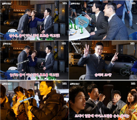 이에 박지영은 "입에 맞췄어 우리", "얘랑 나랑 그러면 안 되잖아"라며 당황해 했고, 이에 촬영장은 폭소의 도가니가 되고 말았다. 당시 고경표 만이 여유로운 표정을 짓더니 이내 카메라를 향해 손가락으로 V자를 지었고, 조정석은 "하필 그 타이밍에 오른쪽으로 돌리셨어"라며 설명해 다시한번 웃음이 터졌다.