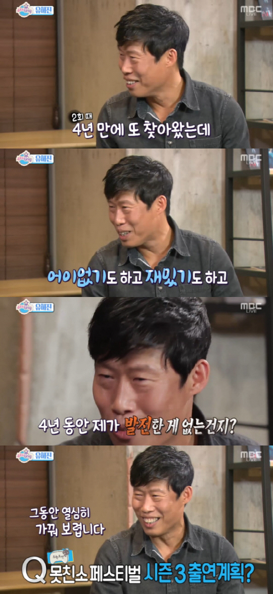 이어 유해진은 "4년 만에 또 찾아왔는데 반갑지 않았다. 어이없기도 하고 재밌기도 했다"며 "4년 동안 내가 진짜 발전한 게 없는 건가라는 생각이 들었다"고 밝혔다.