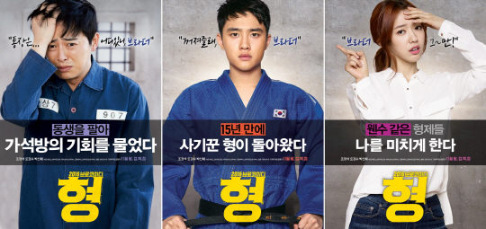 한편, '형'은 남보다 못한 사기전과 10범 형과 잘 나가던 국가대표 동생이 함께 살면서 펼치는 좌충우돌을 그린 작품이다. 조정석, 도경수(엑소), 박신혜 등이 가세했고 '피아니시모' '맨발의 기봉이'의 권수경 감독이 메가폰을 잡았다. 오는 11월 말 개봉한다.